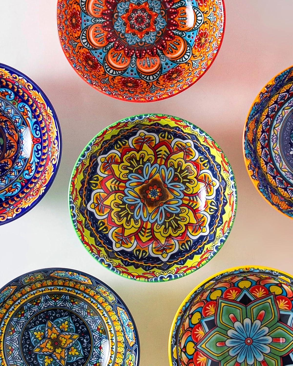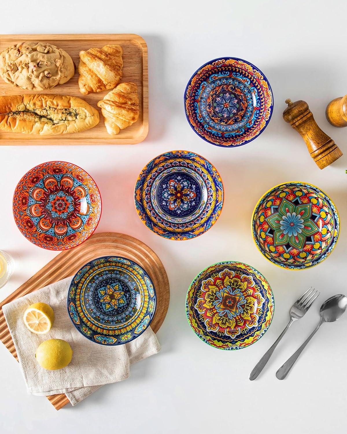 vancasso 26oz Cereal Bowls Set of 6, Boho Ceramic Soup Bowls with Colorful Bohemian Pattern, Microwave & Dishwasher Safe Serving Bowls for Salad, Oatmeal, Pasta, Rice, Dessert